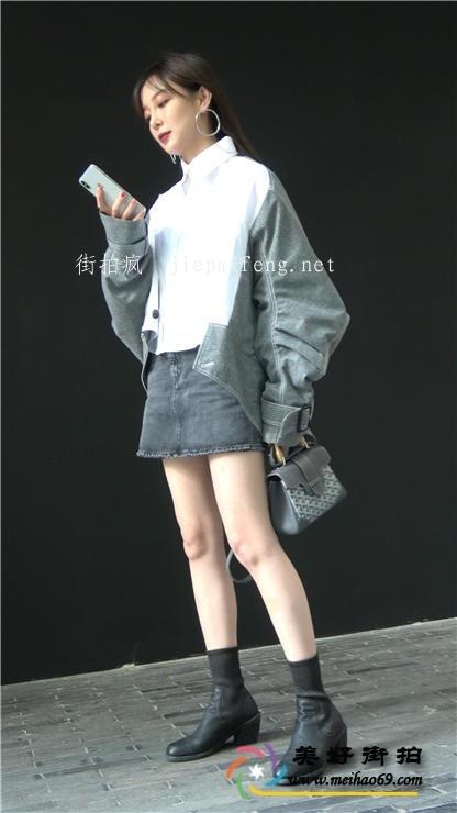 4K-街拍黑色牛仔超短裙性感长腿高跟极品美女[MP4/1.73G]