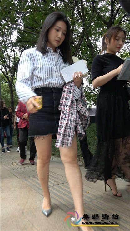 4K-街拍牛仔包臀短裙银色高跟极品白腿丰臀OL美女[MP4/1.23G]2
