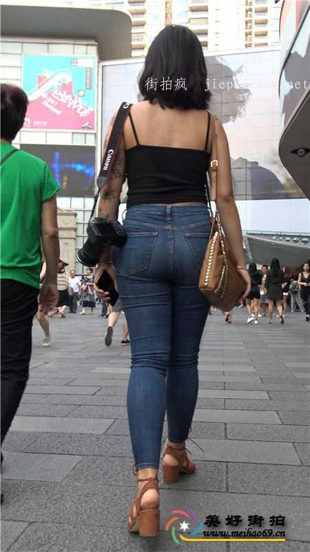 4K-街拍吊带上衣蓝色紧绷牛仔裤美女饱满丰臀[MP4/1.31G]