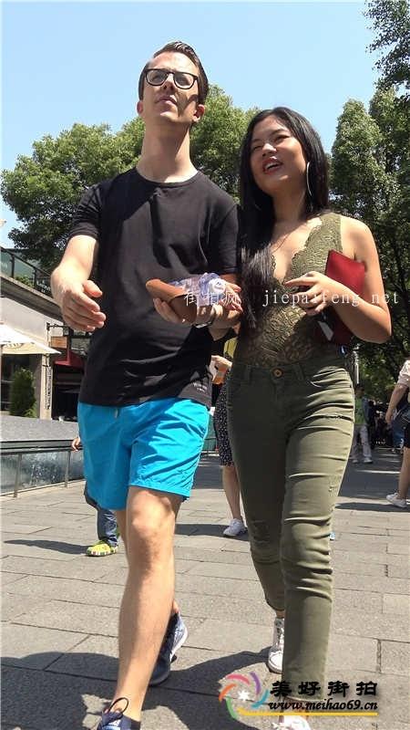 4K-街拍绿色紧身牛仔裤低胸装丰满美女性感翘臀[MP4/1.73G] ...