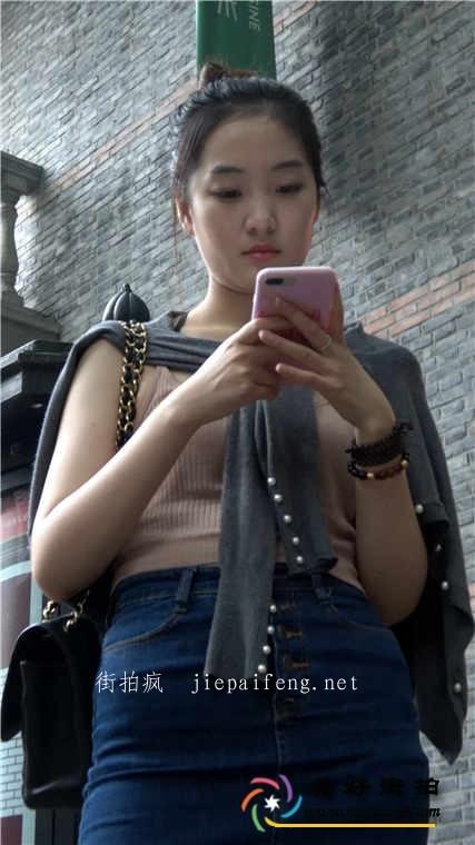 4K-街拍牛仔包臀短裙高跟美腿性感大胸美女[MP4/492M]2