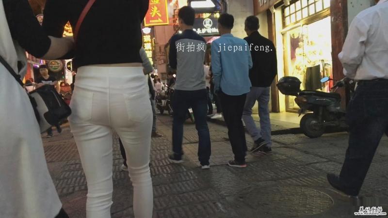 街拍微透紧身白裤显美眉丰满大臀[MOV/790M] 3...