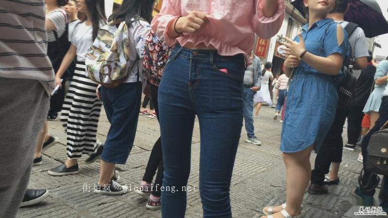 前后拍摄紧绷蓝色牛仔裤美女前三角和翘臀[MOV/869M]