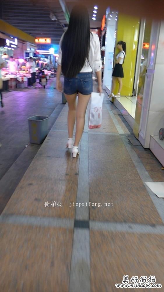 一路跟拍人字拖蓝色牛仔短裤长腿美女[MP4/940M]2