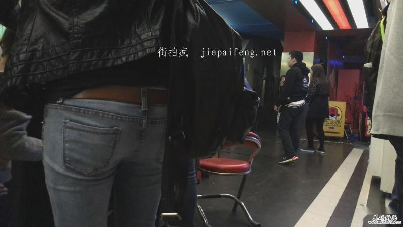 街拍浅蓝紧绷牛仔裤极品圆润翘臀美眉[MP4/547M]