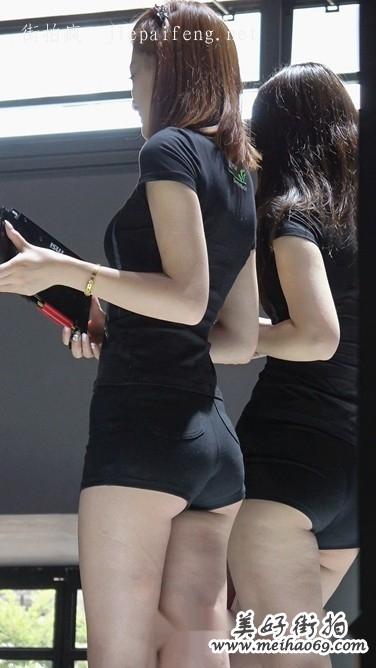 排队买东西的蓝色牛仔短裤细腿圆臀美眉[MOV/153M]