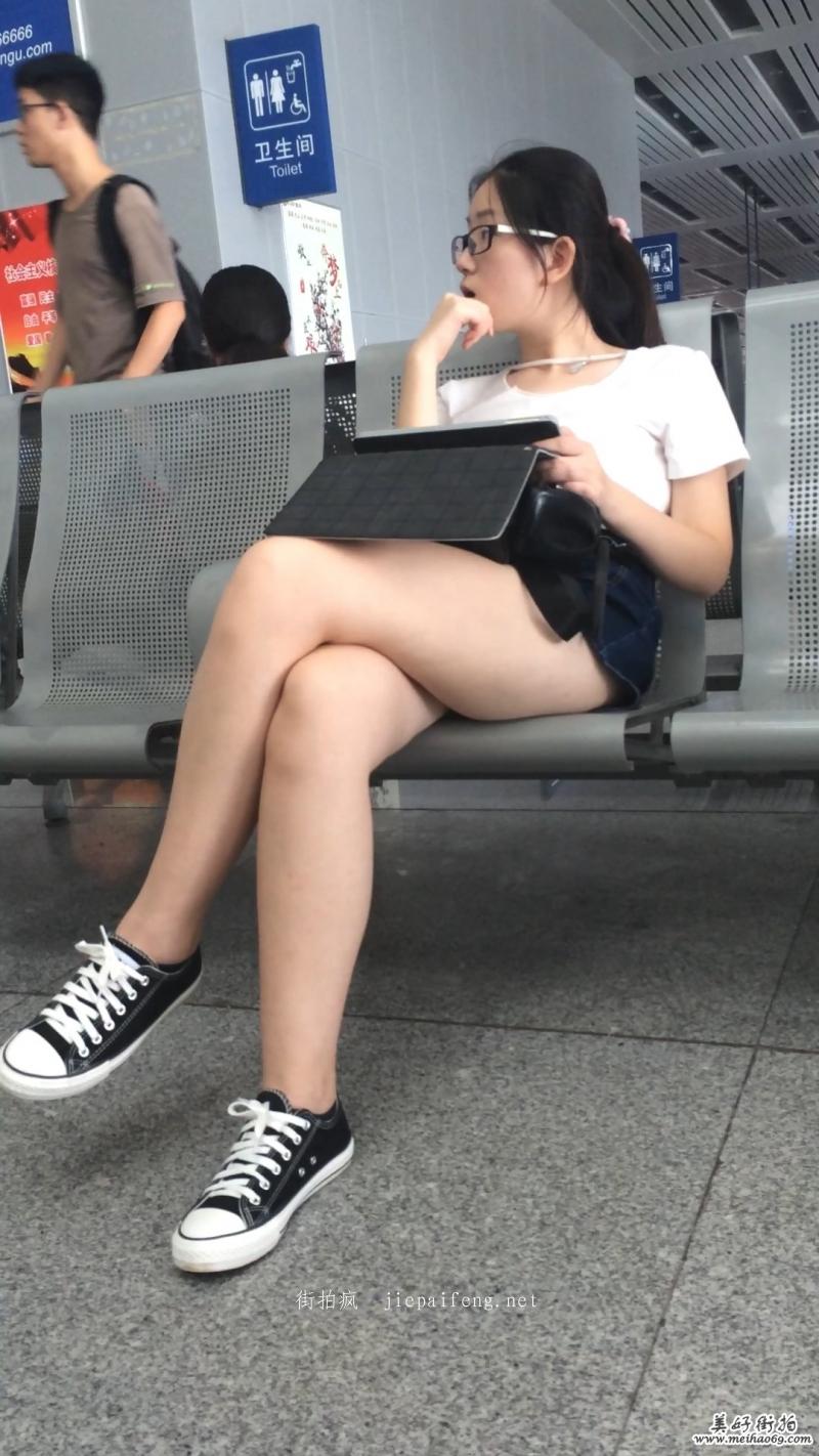 车站蓝色牛仔短裤白腿小妹[MOV/167M] ...