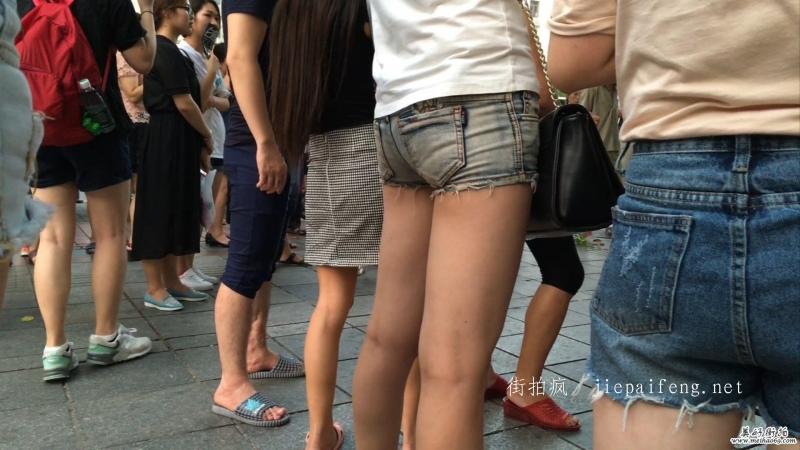 街拍浅灰色紧绷牛仔短裤高挑身材美眉[MOV/275M]2