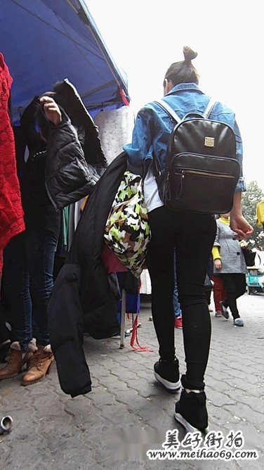 街拍黑色紧身牛仔热裤白腿美眉性感翘臀[MOV/164M]...