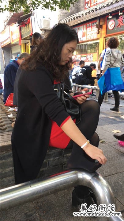 花坛休息的黑色丝袜黑色高跟红色包臀裙白肤少妇[MOV/240M]