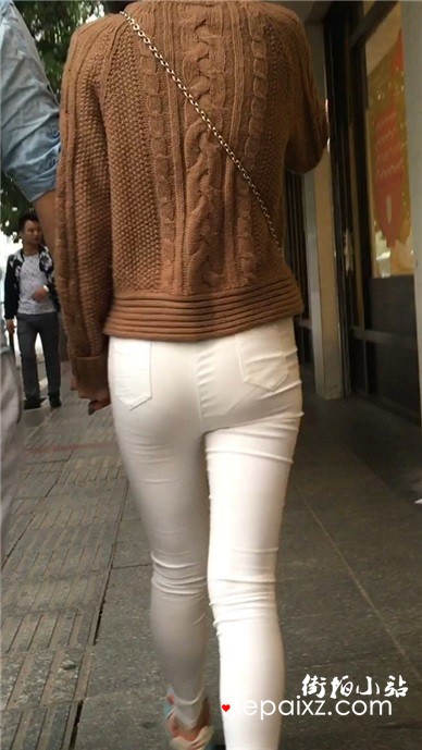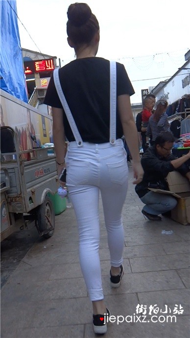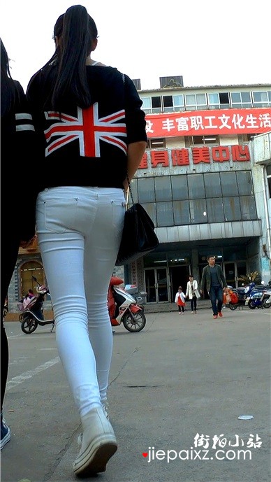 街拍紧身白裤买条娇小美眉