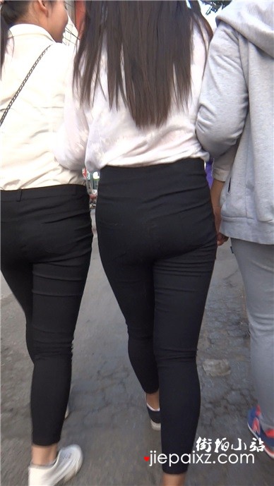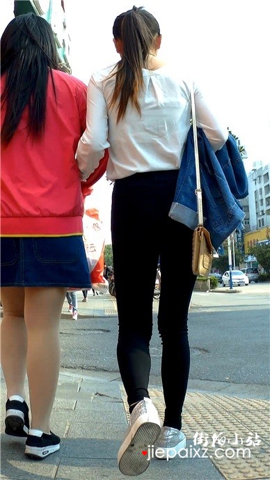 紧身黑裤马尾辫小妹跟闺蜜