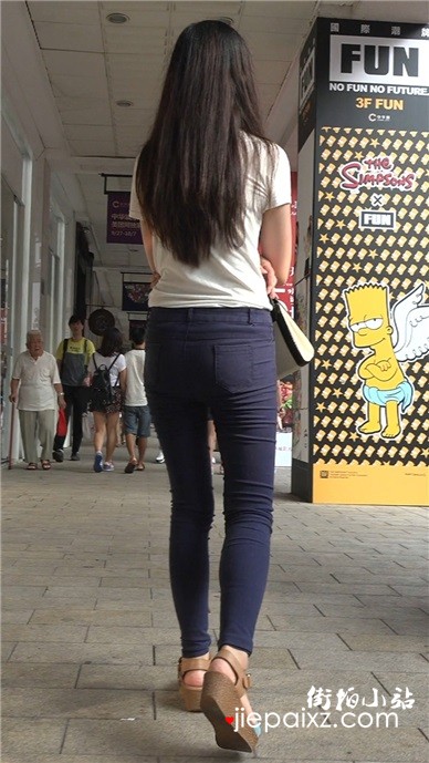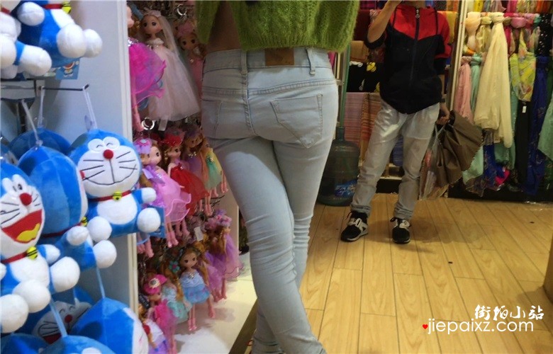蓝色紧身蜜桃臀牛仔裤美眉