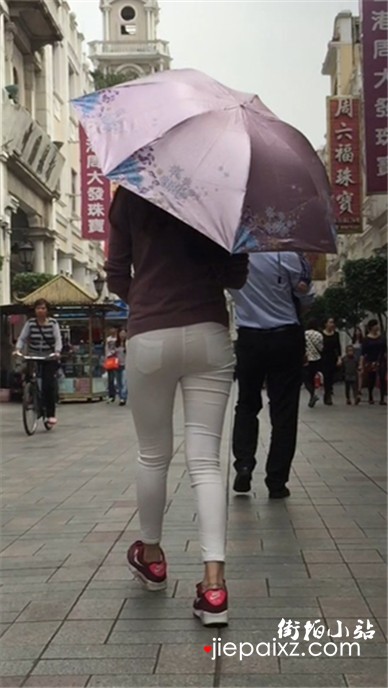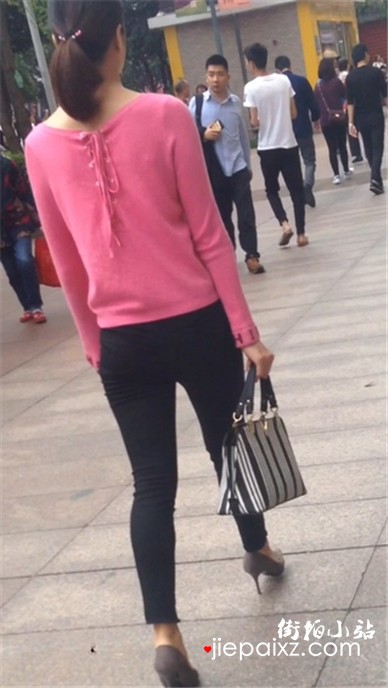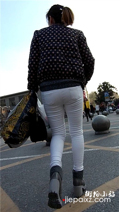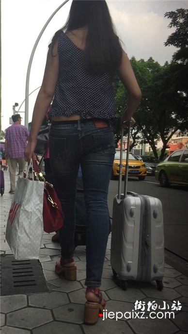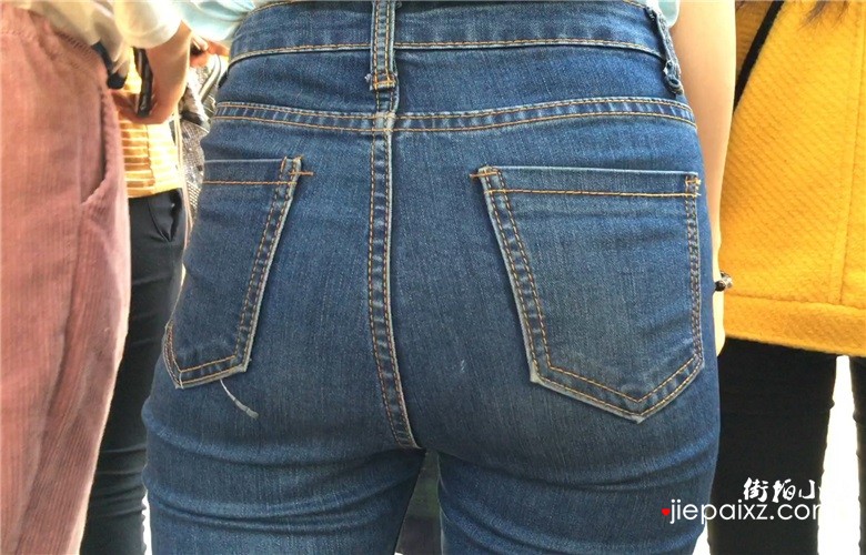 街拍小清新宽臀紧身蓝牛美颜小姐姐