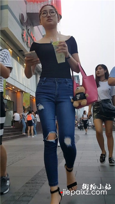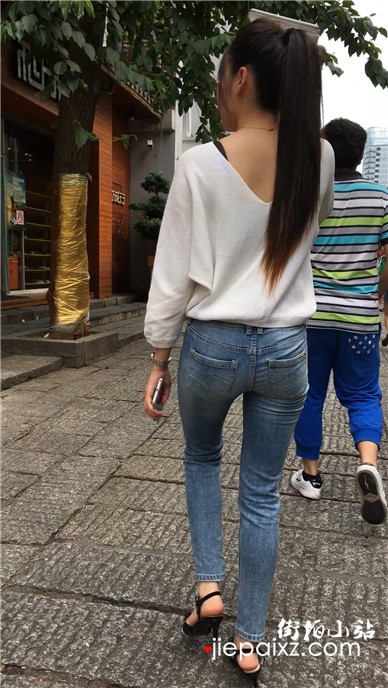 跟拍青春气质紧身蓝牛美女