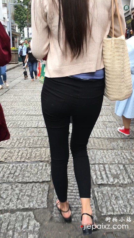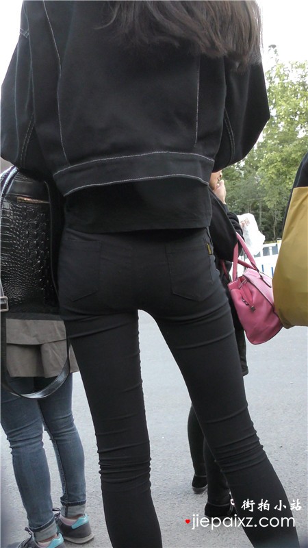 超性感黑色紧身裤翘臀街拍美腿