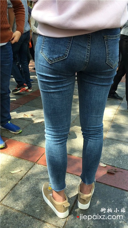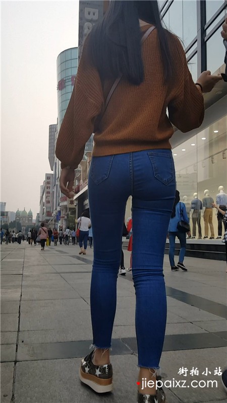 街拍超紧身蓝色牛仔裤美眉