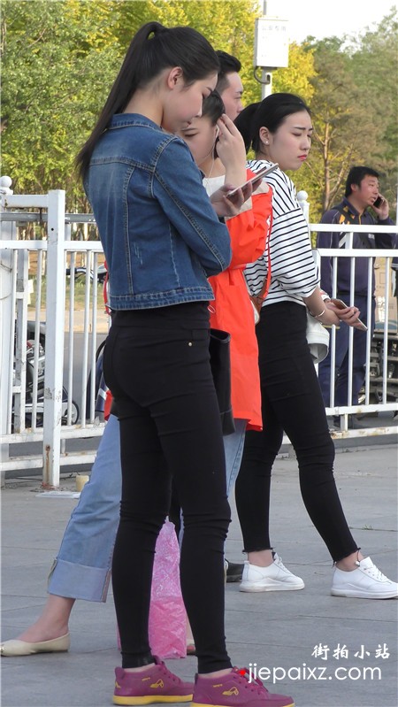 街拍小清纯紧身蓝色牛仔裤美眉