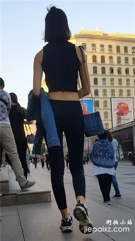 街拍黑色紧身裤小蛮腰气质美女