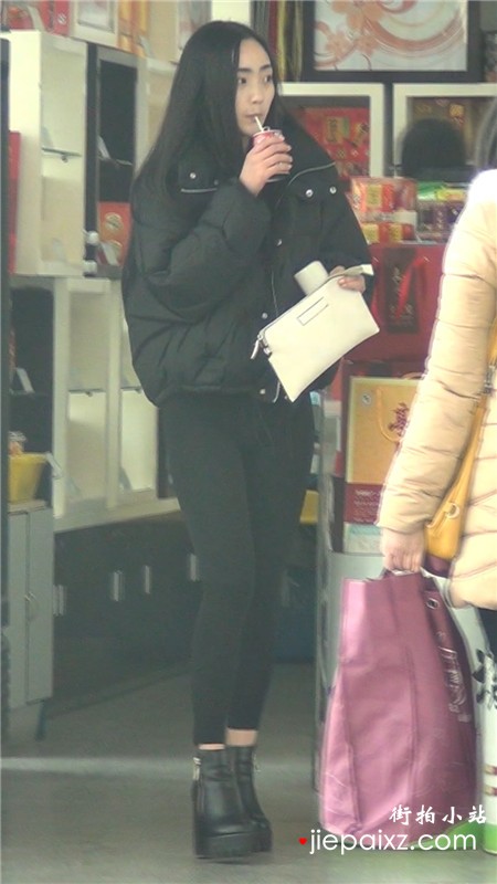 街拍超紧弹力裤黑色系美眉