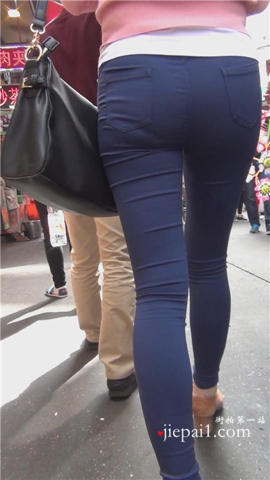 蓝色紧身裤少妇的美臀很诱人