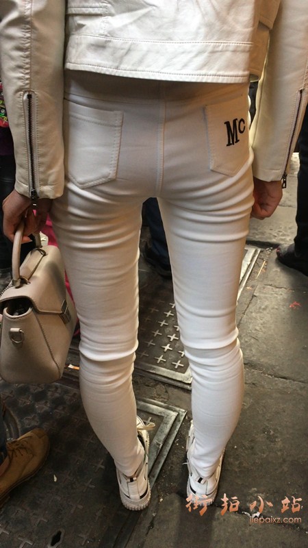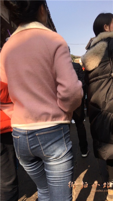 超紧绷蓝色牛仔裤丰腴美臀街拍美女