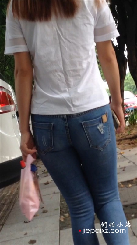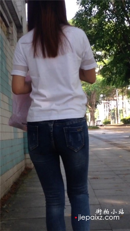 跟拍白T恤超级紧身牛仔裤妹纸