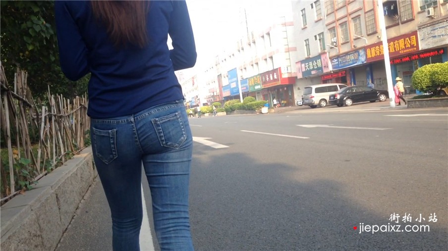 街拍紧身蓝牛美女姐姐