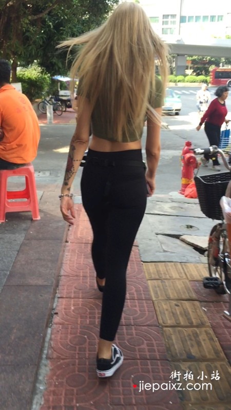 街拍白色紧身裤美女,真的好紧好紧