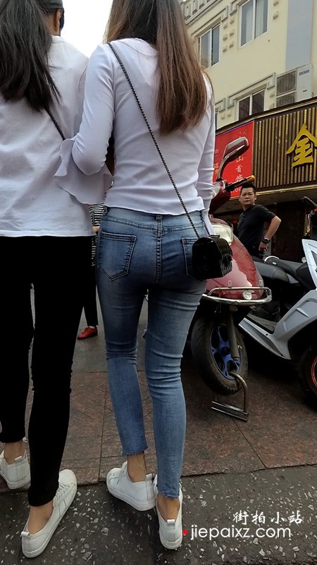 街拍紧身牛仔裤美女小姐姐