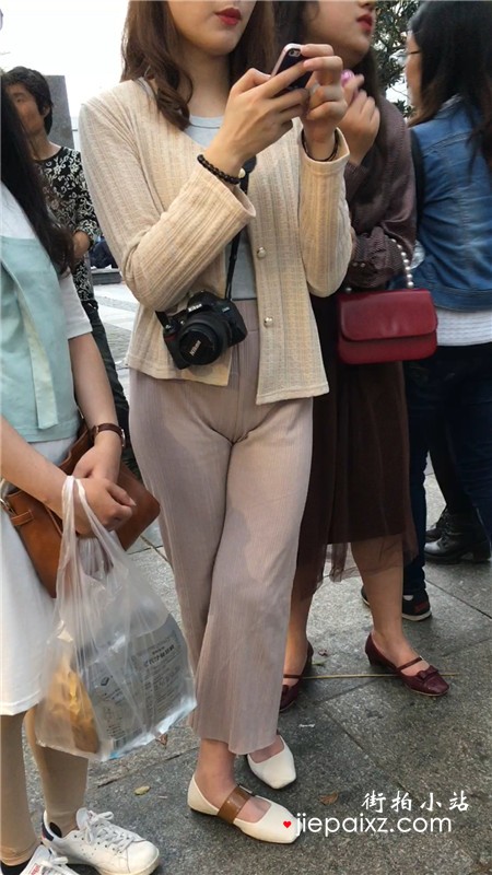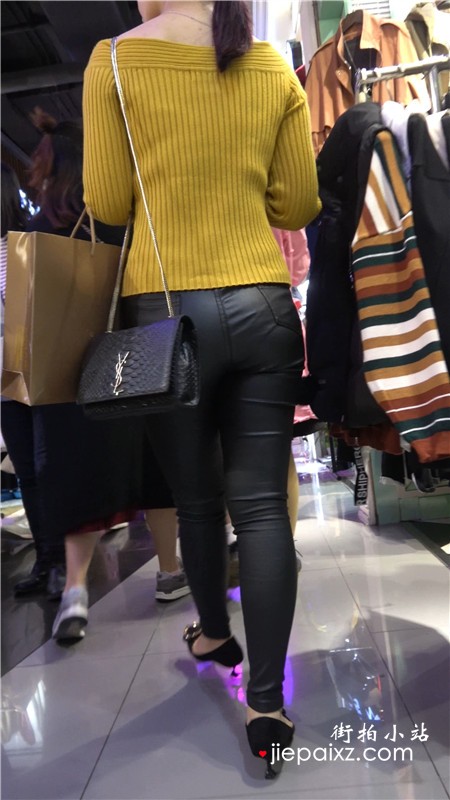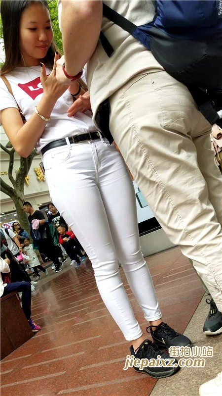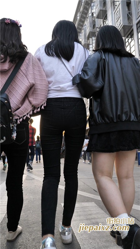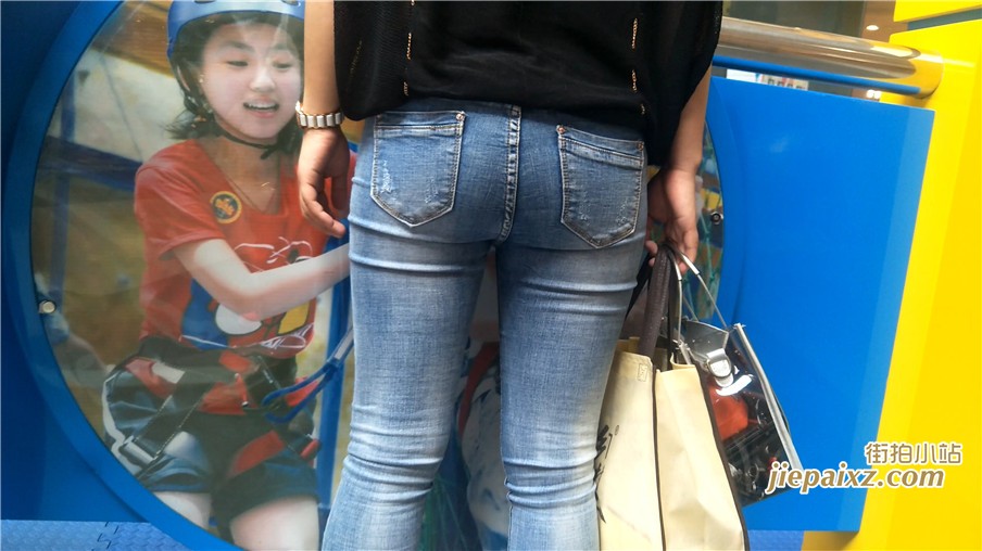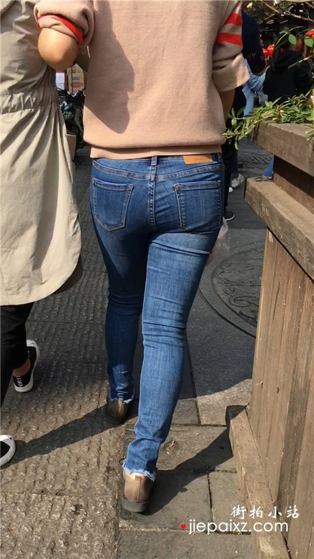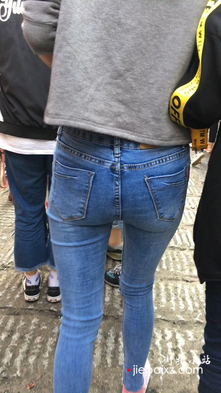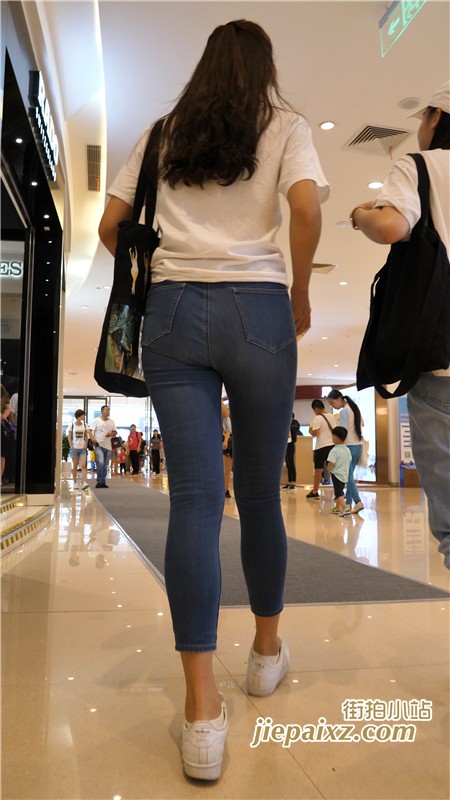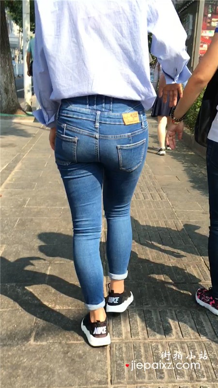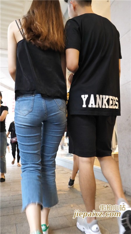 街拍紧身蓝牛黄T恤鸭舌帽小姐姐