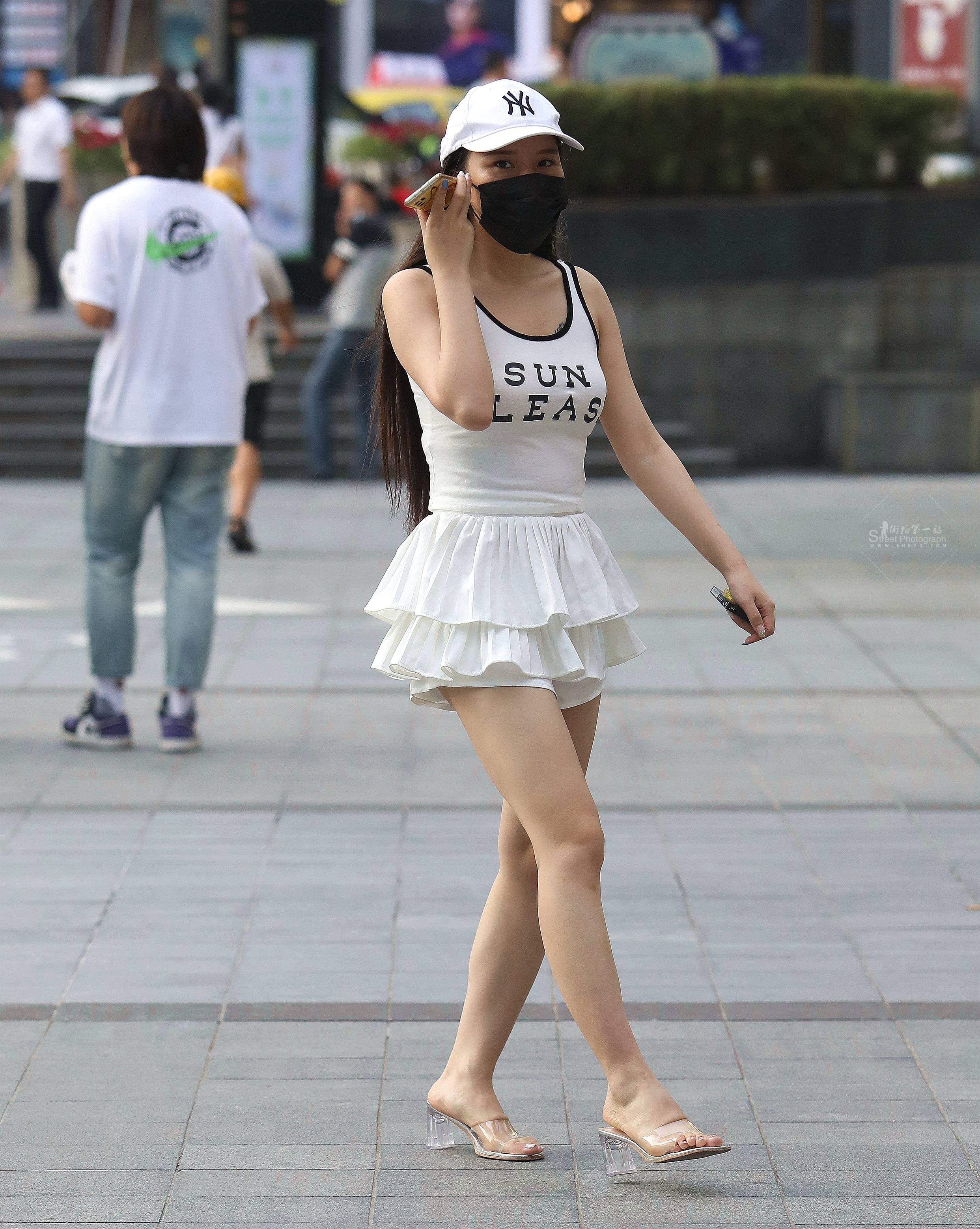 【独家原创】勒紧的白丝肉腿透明短裙美女