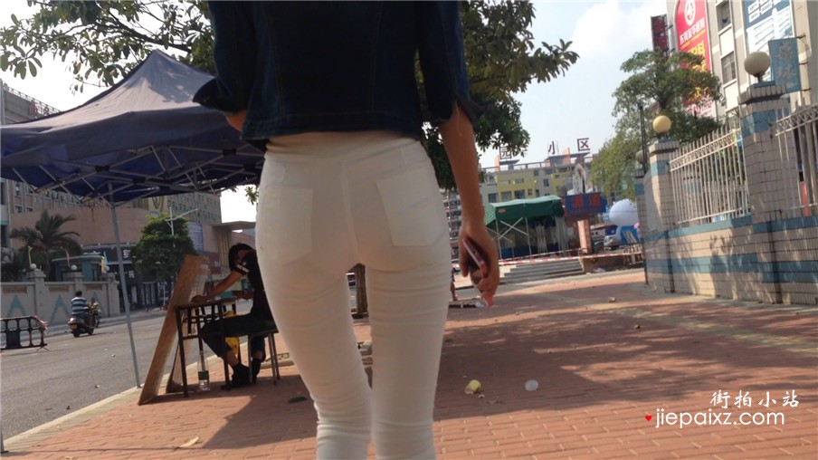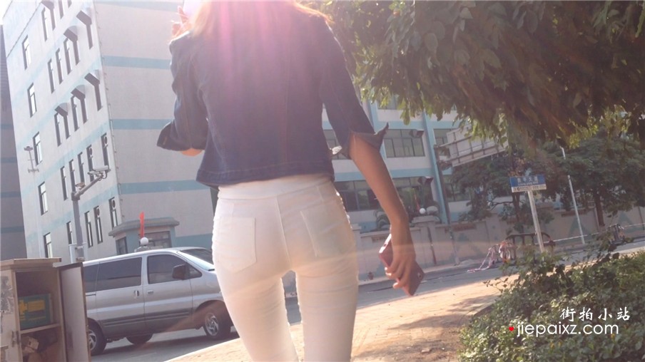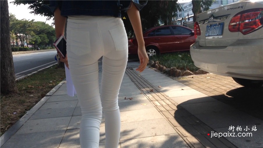 超级紧身白裤美腿学妹