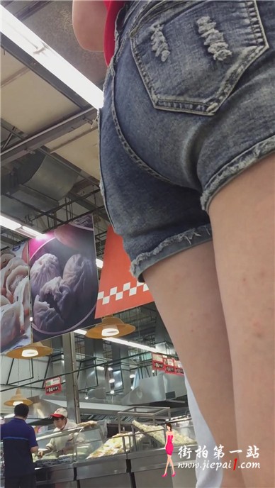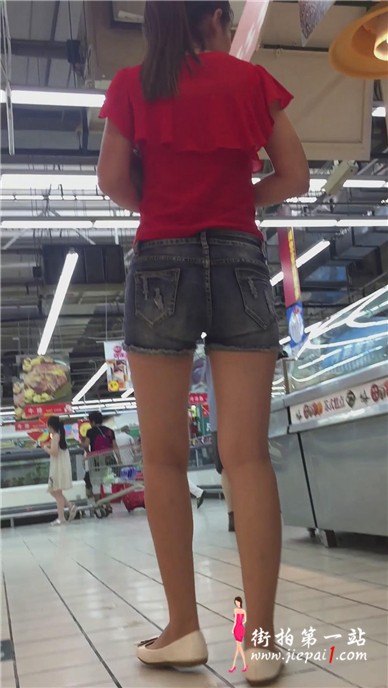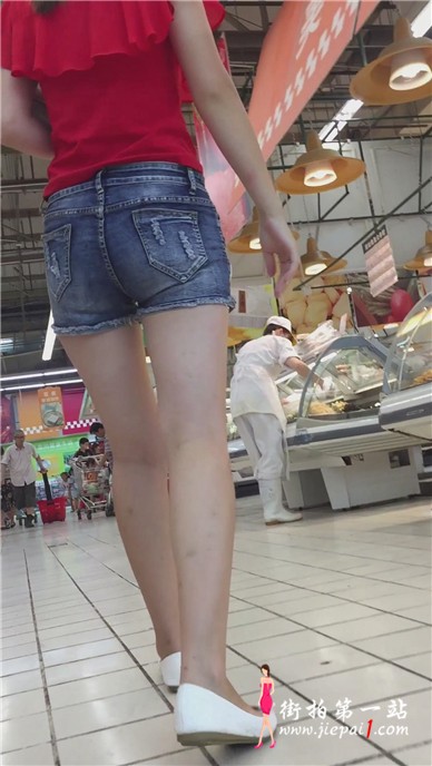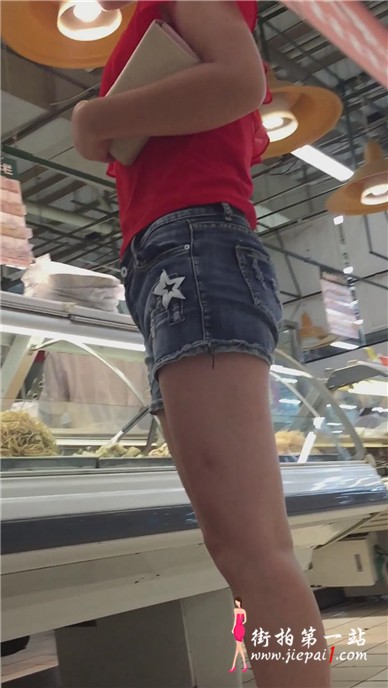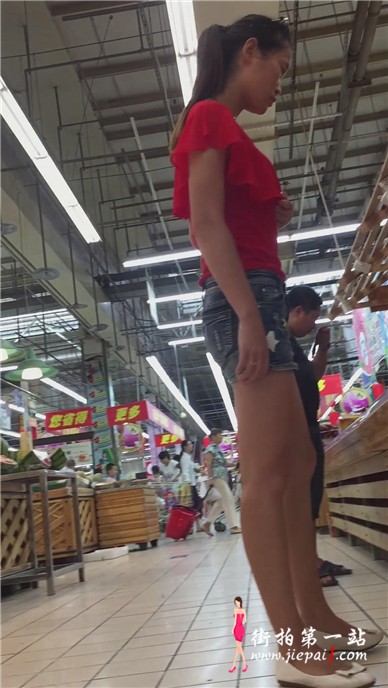 超市偶遇墨镜红衣热裤美女,好像有点不开心。