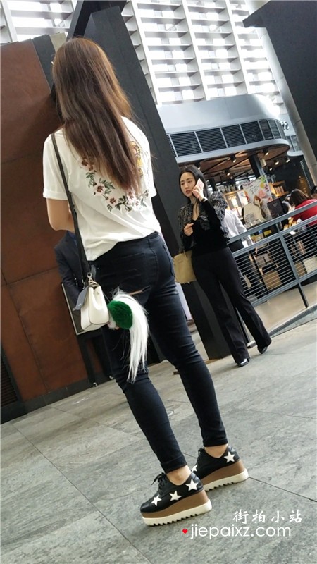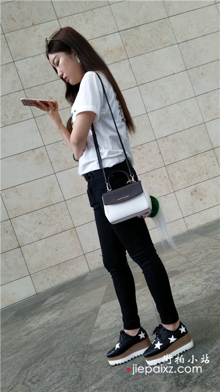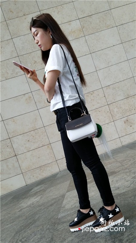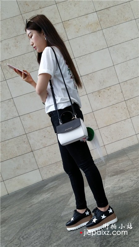 4K - 超有气质的白T恤黑色紧身裤街拍漂亮美女