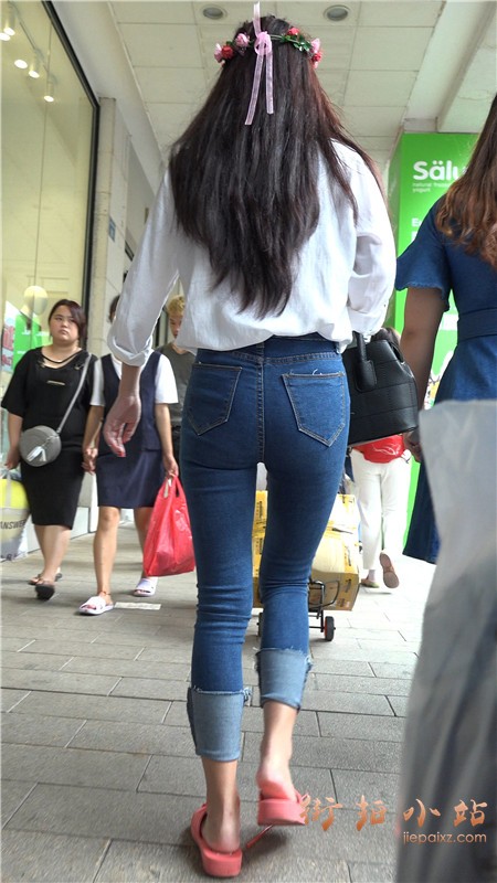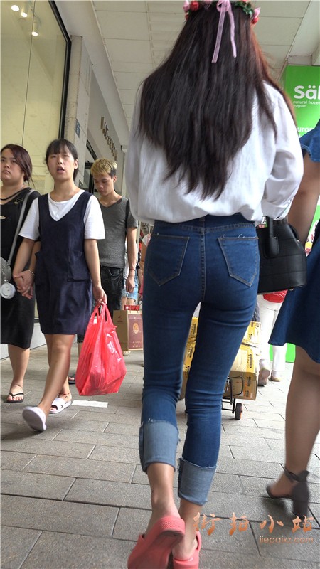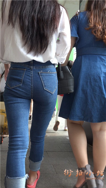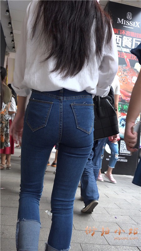 4k-超紧白衬衫紧身蓝牛街拍美臀