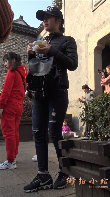 4k-灰色紧身牛仔裤鸭舌帽气质街拍美女