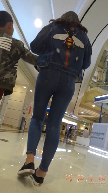 4k-街拍紧身蓝牛帆布鞋长腿小美女