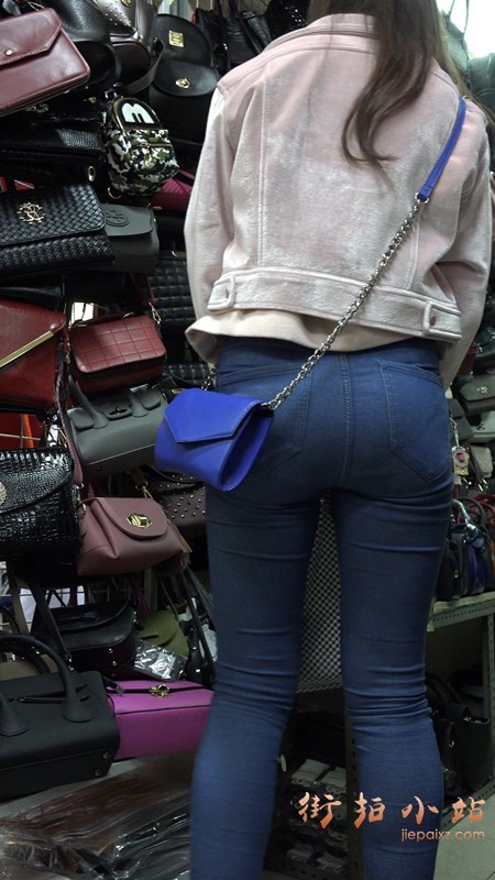 极品紧身蓝牛粉色高跟鞋女神姐姐逛鞋店