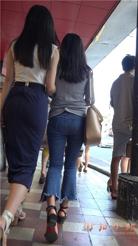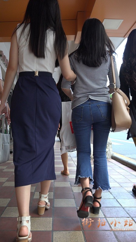 4k-紧身蓝牛加深蓝包臀裙高挑美女姐妹