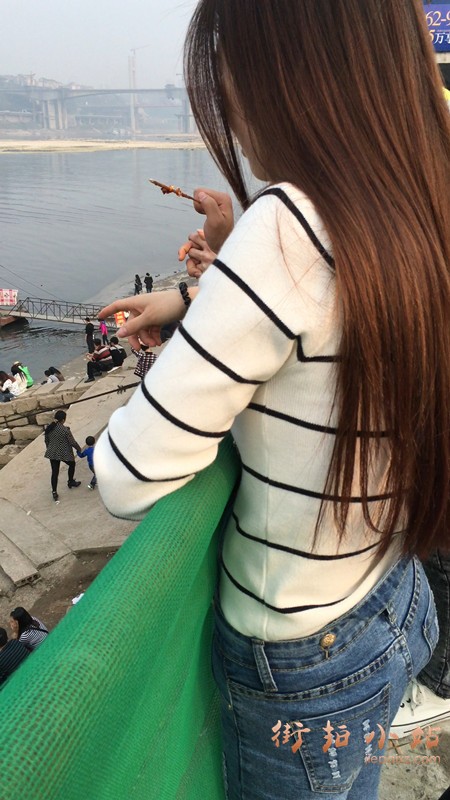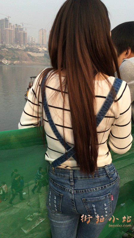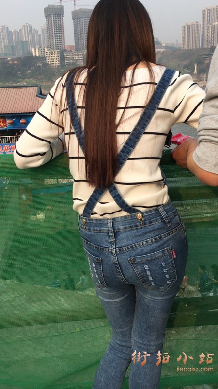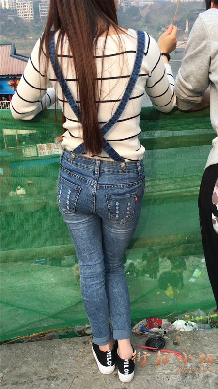 4k-超紧吊带脸色牛仔裤街拍美女小姐姐