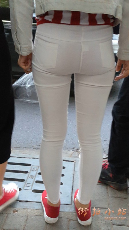 4k-等公交车的超级紧绷白裤街拍美女