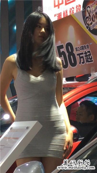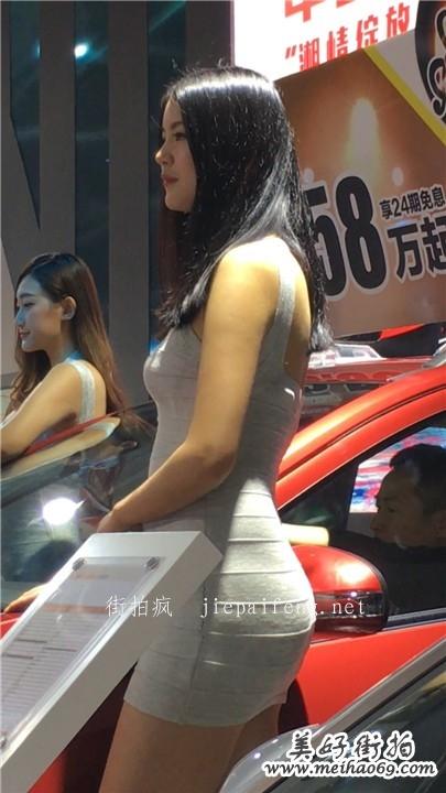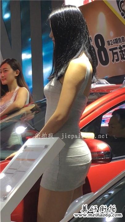车展白色紧身连衣裙极品美女车模性感饱满翘臀[MOV/352M]