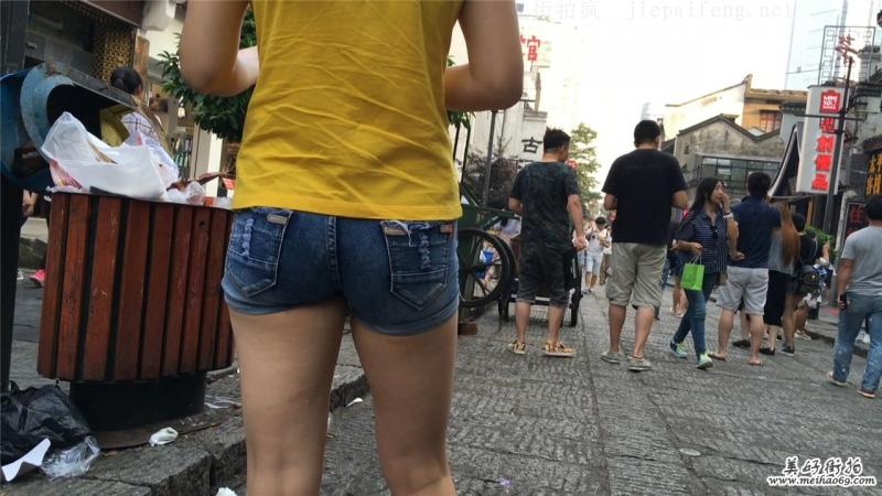 古街旅游的蓝色紧绷牛仔短裤小少妇性感圆臀[MOV/1.98G]