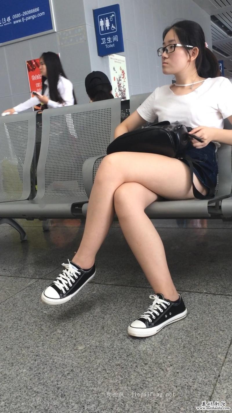 车站蓝色牛仔短裤白腿小妹[MOV/167M]