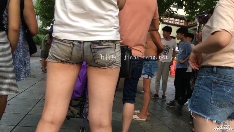 街拍浅灰色紧绷牛仔短裤高挑身材美眉[MOV/275M]