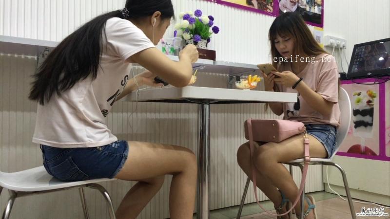 冷饮店两个牛仔短裤白腿漂亮美眉[MOV/610M]