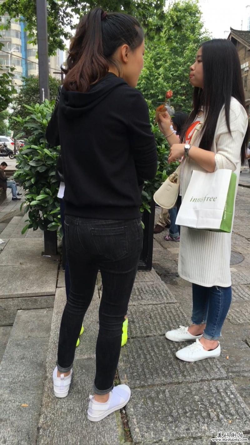 街拍黑色紧身牛仔裤饱满大屁股马尾辫美眉[MOV/286M]