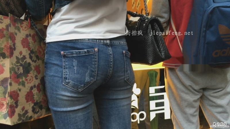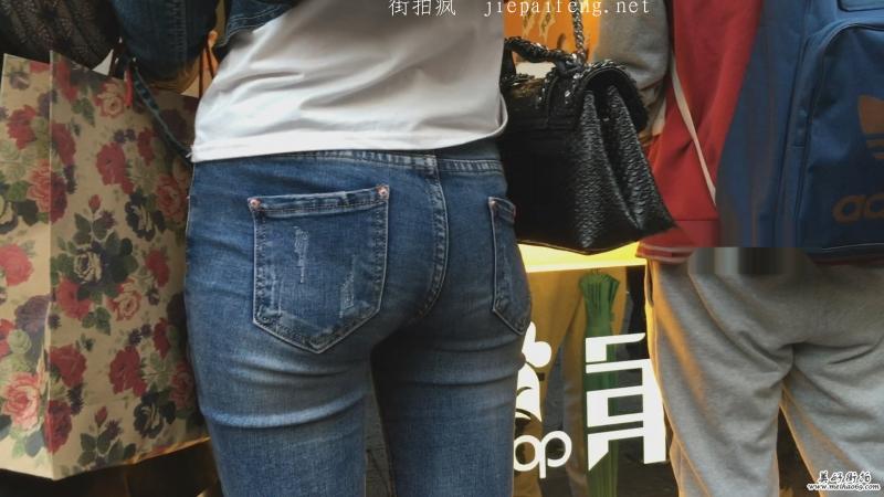 蓝色紧身牛仔裤美女排队买饮料[MOV/429M]