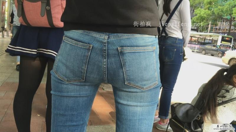 街拍蓝色紧身牛仔裤性感紧臀显内痕美眉[MOV/658M]2